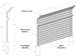 The fence is made of iron with a diameter of 4.5 mm, and it is available with two types of corrosion protection: